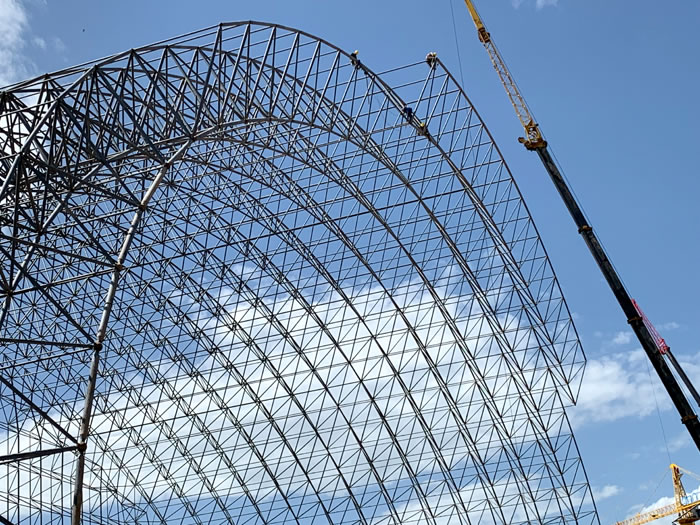 (2)网架加工前应对现场尺寸进行复测,确认无误后方可进行加工、安装;网架制作、运输、安装应遵守《空间网格结构技术规程》JGJ7-2010、《钢网架辽阳螺栓球节点》JG/T 10-2009、《钢网架辽阳螺栓球节点用高强度螺栓》 GB/T 16939-2016、《辽阳钢结构辽阳工程辽阳施工规范》 GB50755-2012、《辽阳钢结构辽阳工程施工质量验收标准》 GB50205-2020。